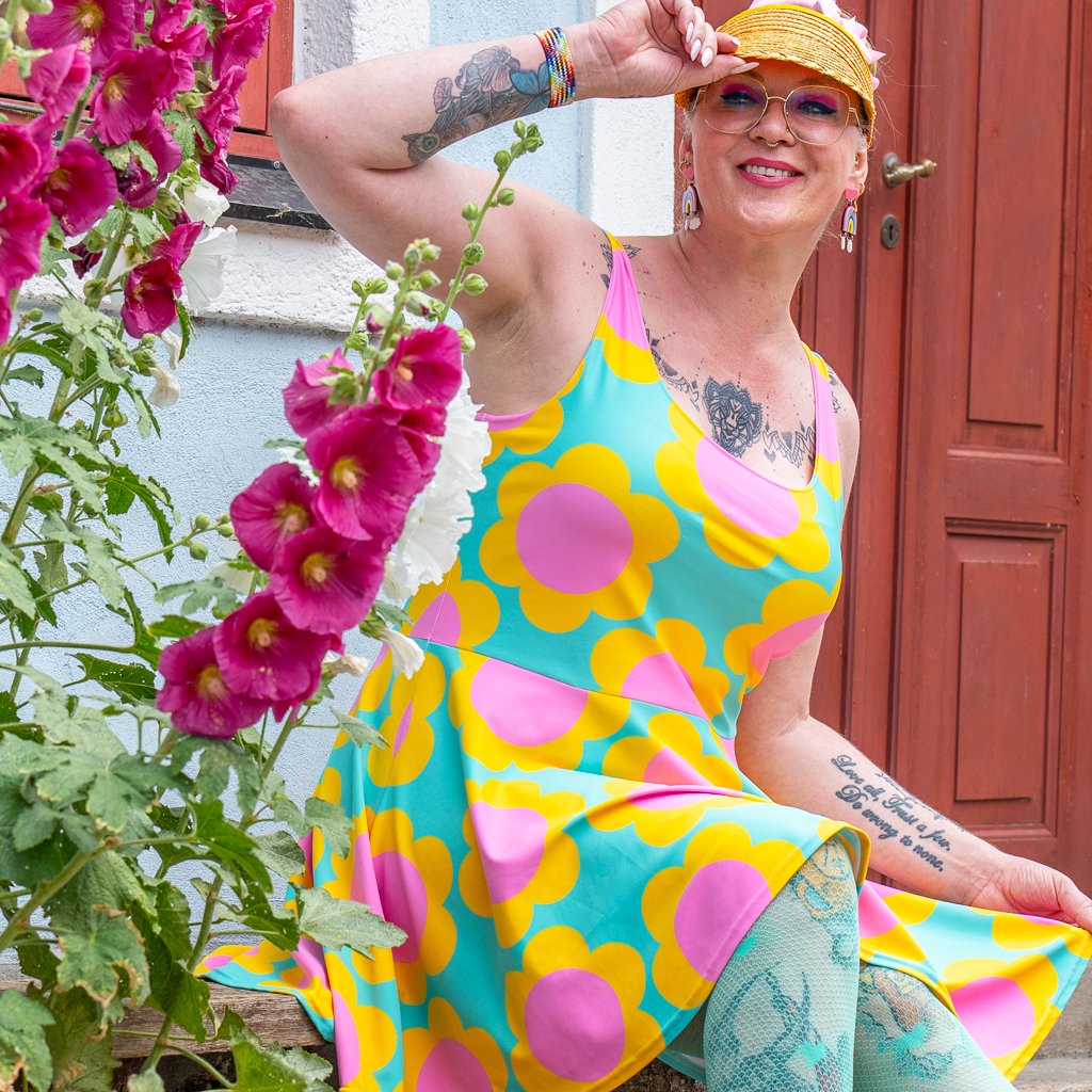 Our colorful skater dresses embody joy, movement, and vibrant self-expression.