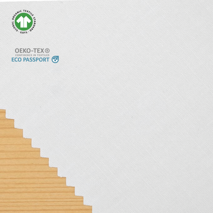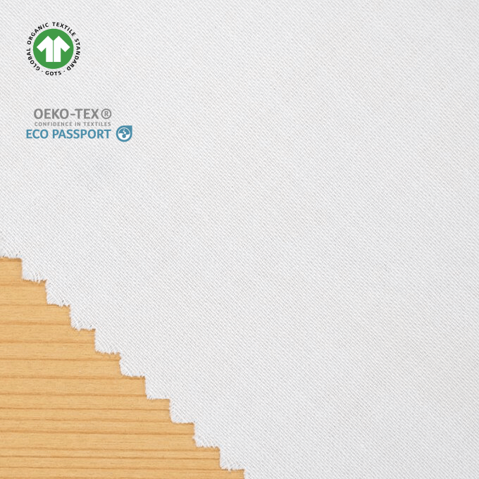97% organic cotton 3% elastane (GOTS) - weight 270 gsm - width 146 cm. Suitable for jackets, shirts, bags, decorative pillowcases and more.