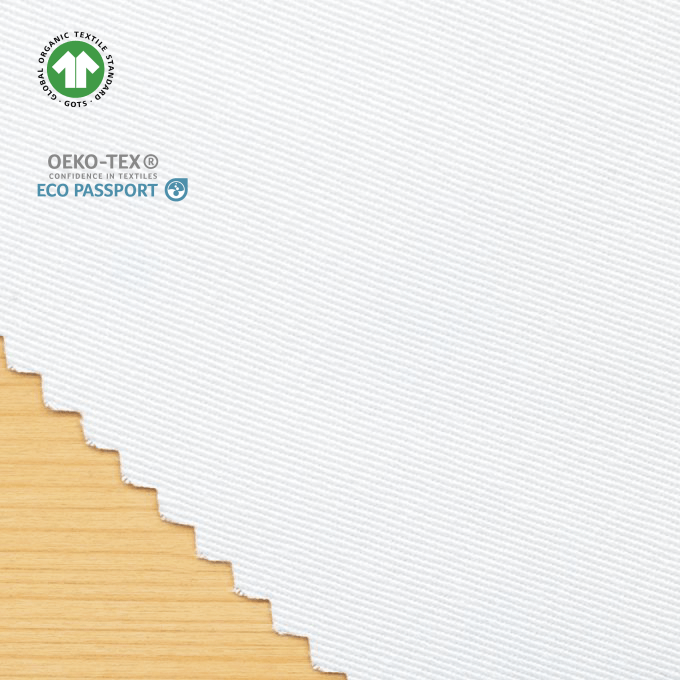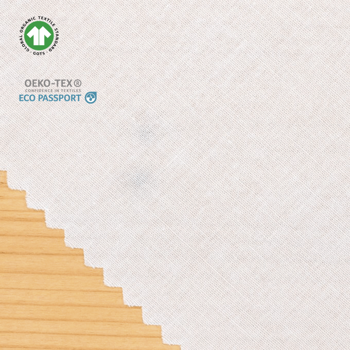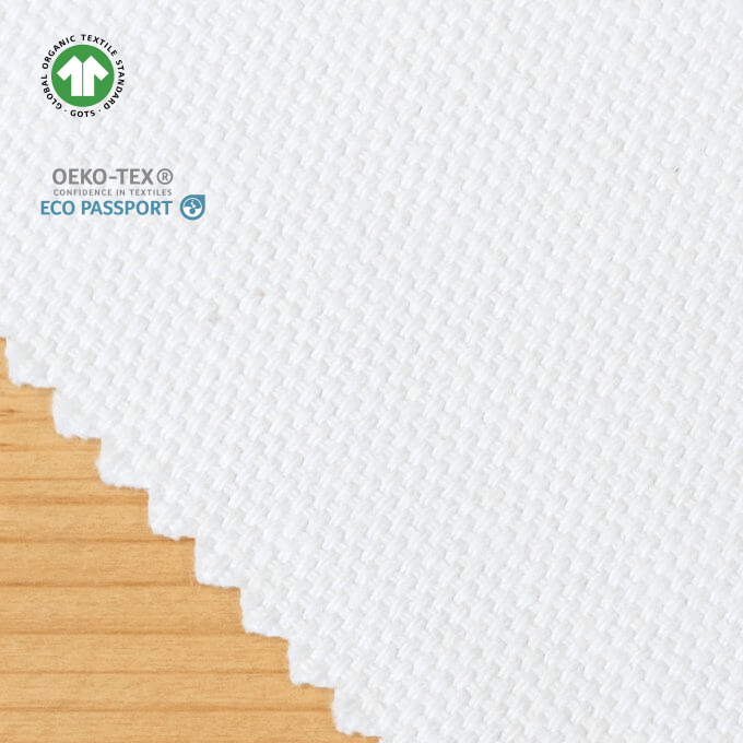 100% organic cotton (GOTS) - weight 165 gsm - width 144 cm. Suitable for home decor, heavier garments, curtains, tablecloths, bags and more.