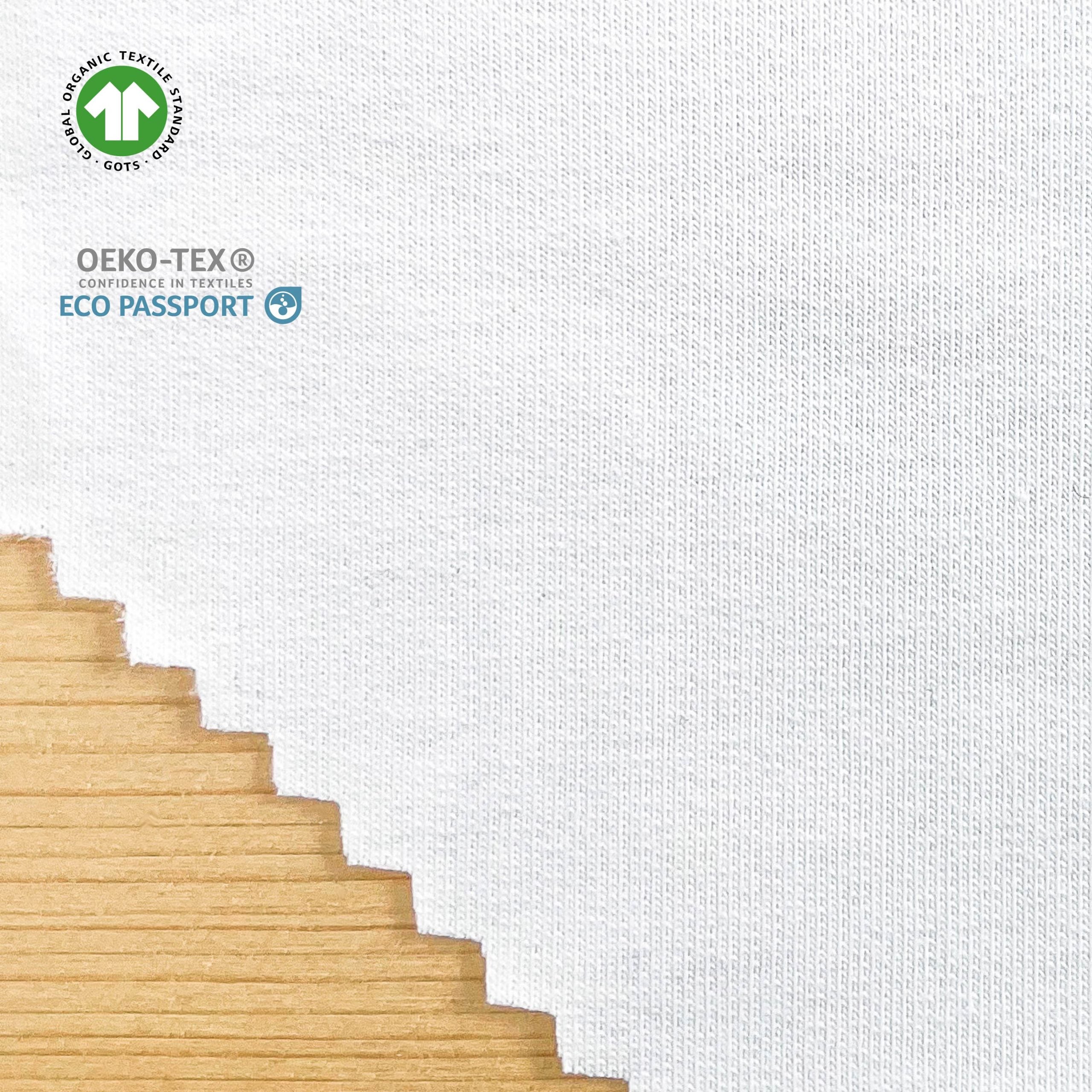100% organic cotton - weight 180 gsm - width 159 cm. Suitable for t-shirts, underwear, dresses and more.