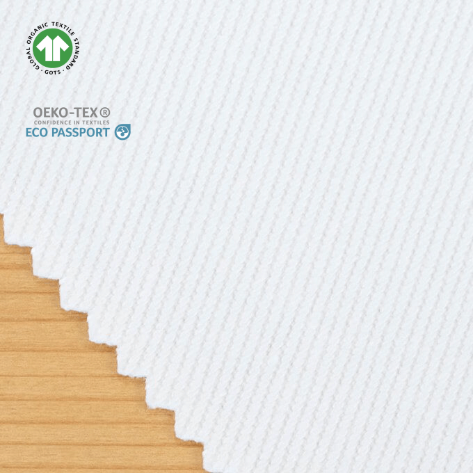 92% organic cotton 8% elastane - weight 220 gsm - width 150 cm. Suitable for skin-tight clothes, shirts, hair accessories and more.