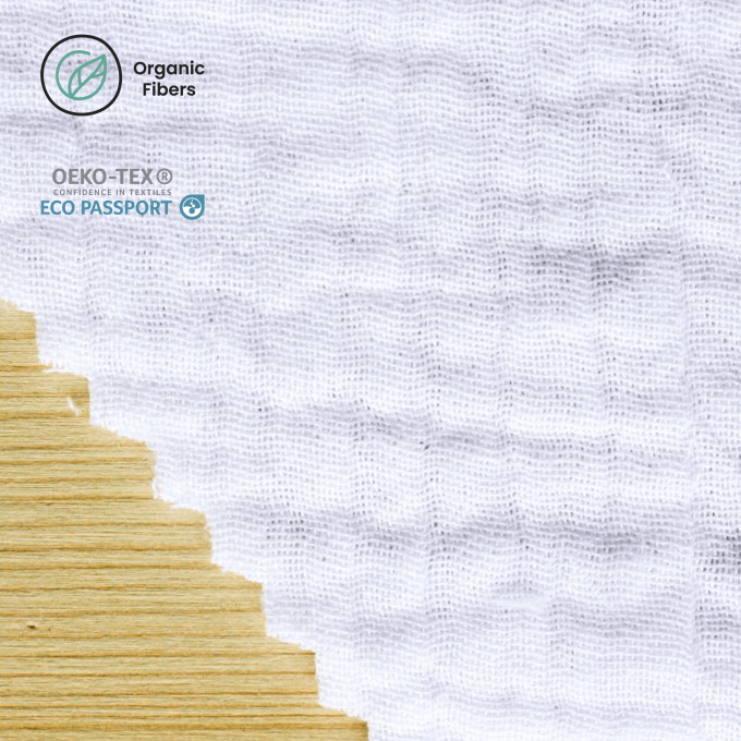 100% organic cotton - weight 130 gsm - width 128 cm. Suitable for baby clothes, casual clothes, childrens clothes, scarves, accessories and more.